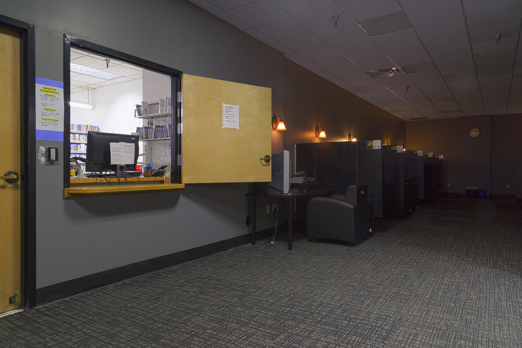You may check out all digital moving image formats for in-house viewing only. There are 13 viewing stations for up to two people set up for use with headphones. A group viewing room that seats 10 is available, but must be scheduled through Film Services staff.