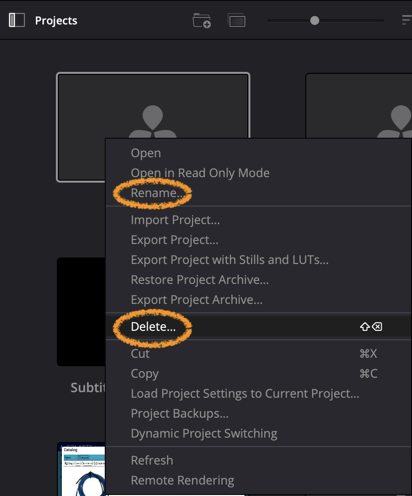 To organize your projects, you can rename and delete your projects by right-clicking said project. Additionally, by right-clicking in your Project Library, you can create folders to group projects together.