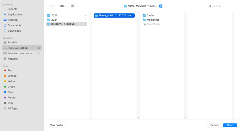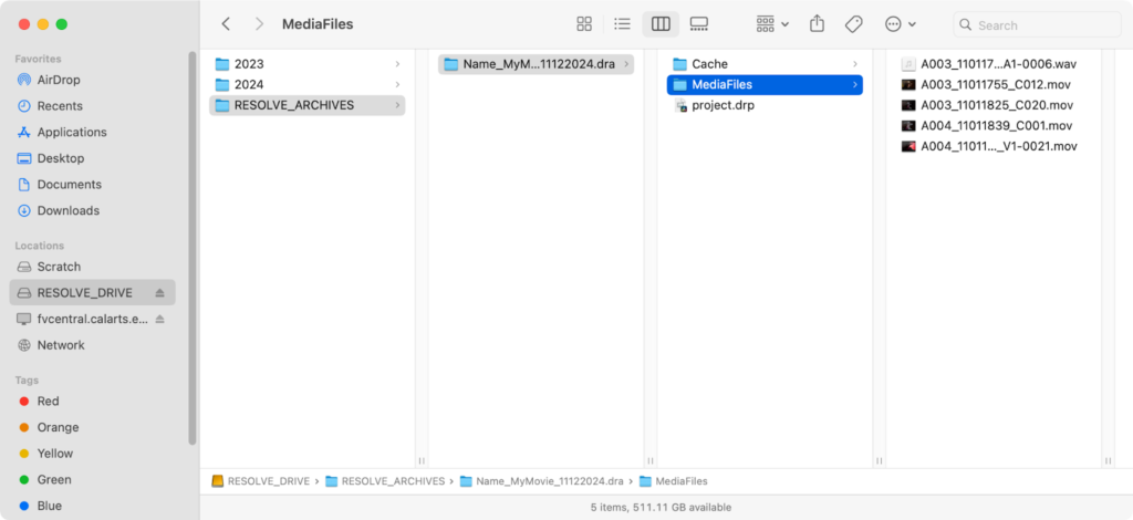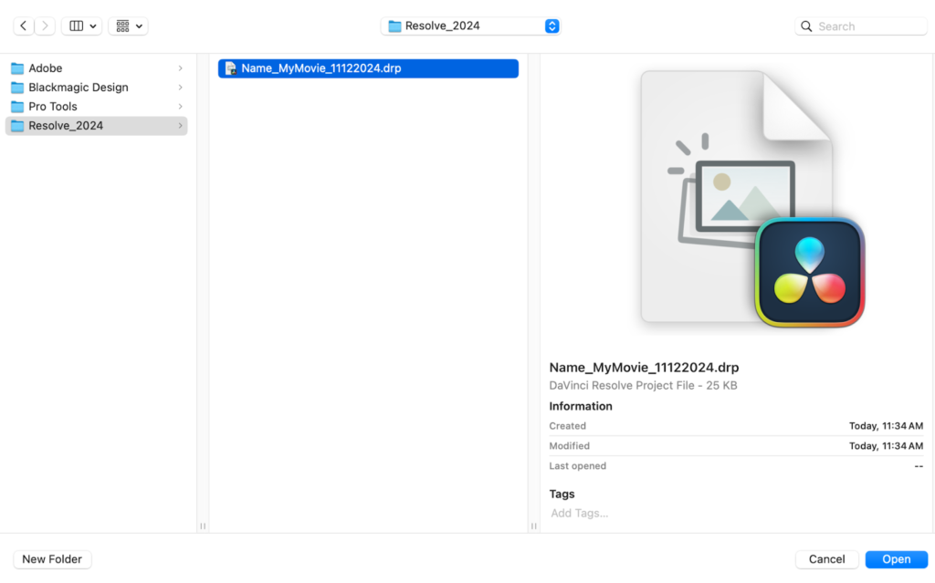 Resolve creates a folder with the extension .dra.