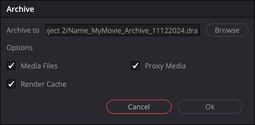 A .dra file is ideal for transporting a self-contained project between systems, meaning you will not need to re-link media.