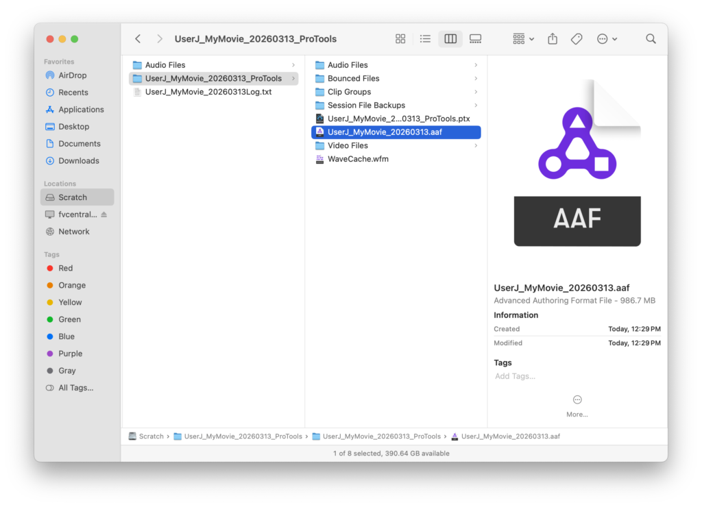 Before you import your AAF file, copy it from the location you specified during the export into your newly created Pro Tools Session Folder. This ensures that all the media for your Pro Tools Session is always in the same location.