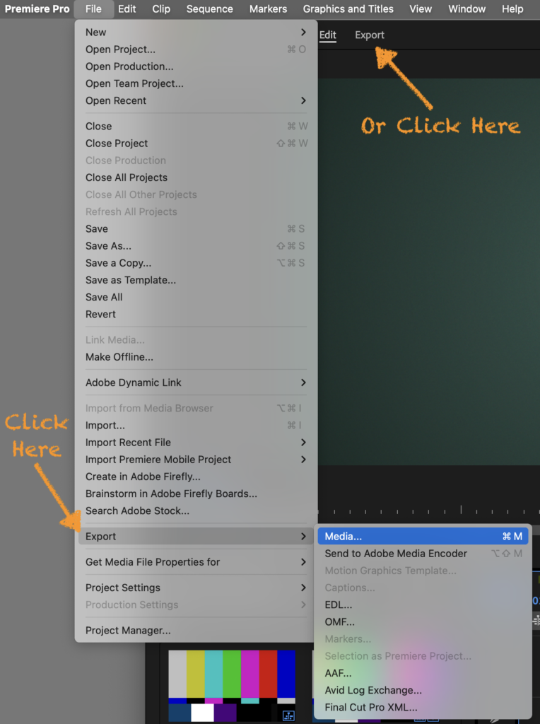 Alternatively you can click on the Export tab or use the keyboard shortcut Ctrl + M (Windows) or command + M (macOS).