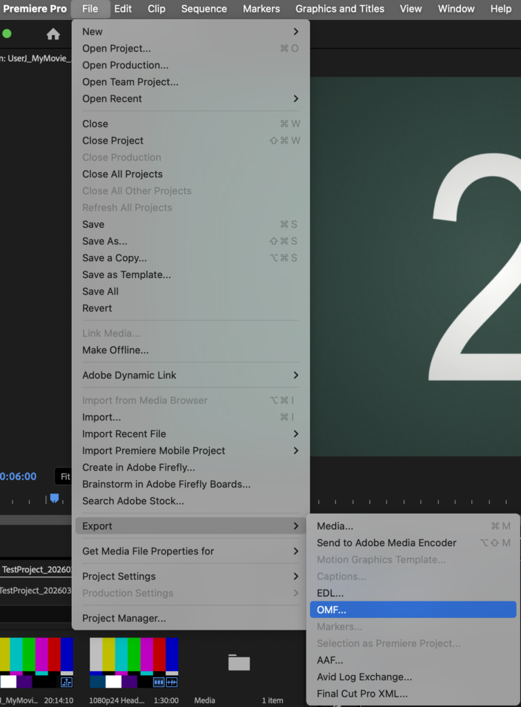 In the event that an AAF will not export and Premiere continually gives error messages, this handout will also go over creating an OMF (Open Media Framework), importing it into Pro Tools and relinking all the audio. OMFs are not an ideal format and should only be created when an AAF is not possible. All image/video export steps will be the same when using an OMF.