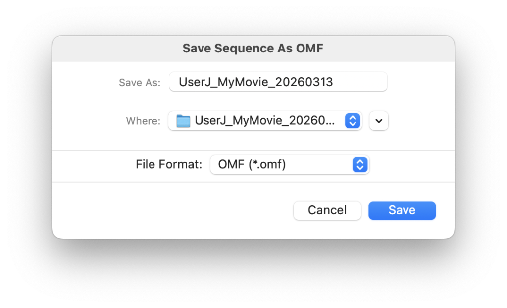 If you are unable to export sound using an AAF, you will need to create an OMF to carry your audio to Pro Tools. OMFs will not include all of the metadata or audio clips effects that an AAF does.