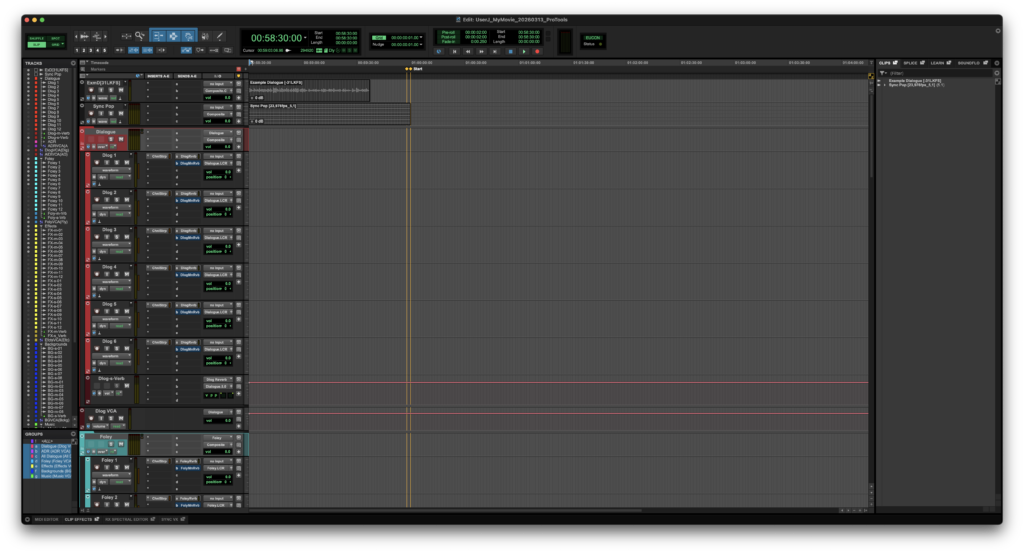 Click on the name of the Sync Pop track to select it. This way, the imported tracks from your AAF file will appear directly between Sync Pop and Dlog 1.